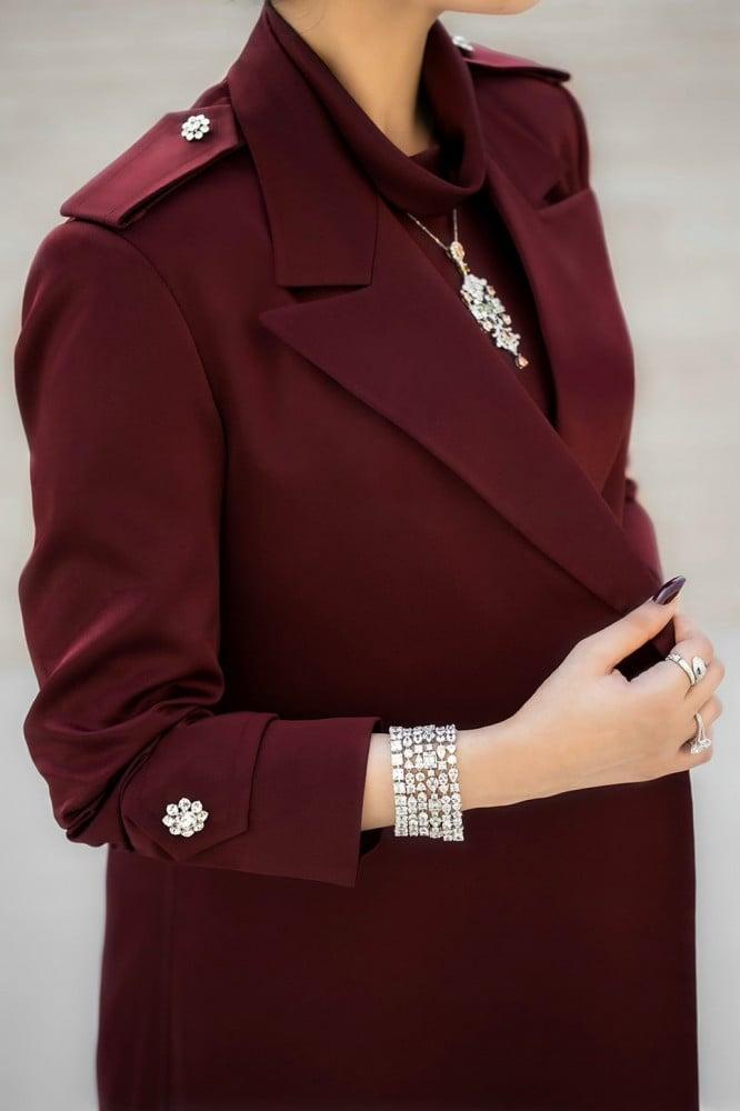 الستايل اليومي الناعم المزين بالازرار الايطالية بكريستال سواروفسكي والخامة عملية تتحمل كثرة الاستعمال والغسيل باليد ومناسبة للصيف وجميع الاوقات ومبطنة من الامام ببطانة خفيفة الوزن