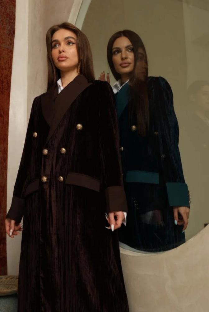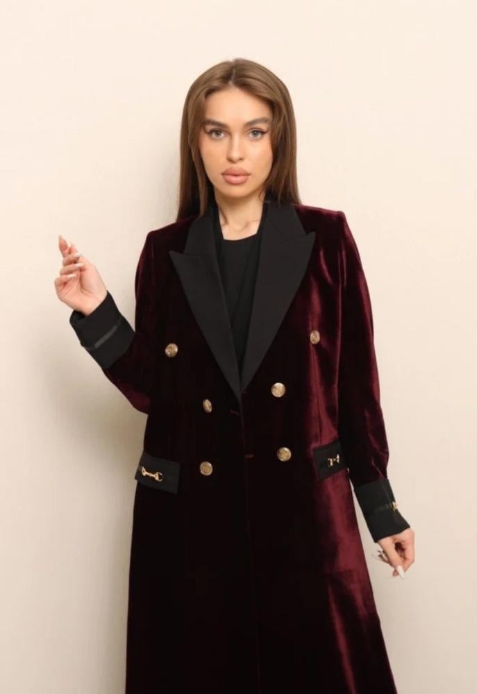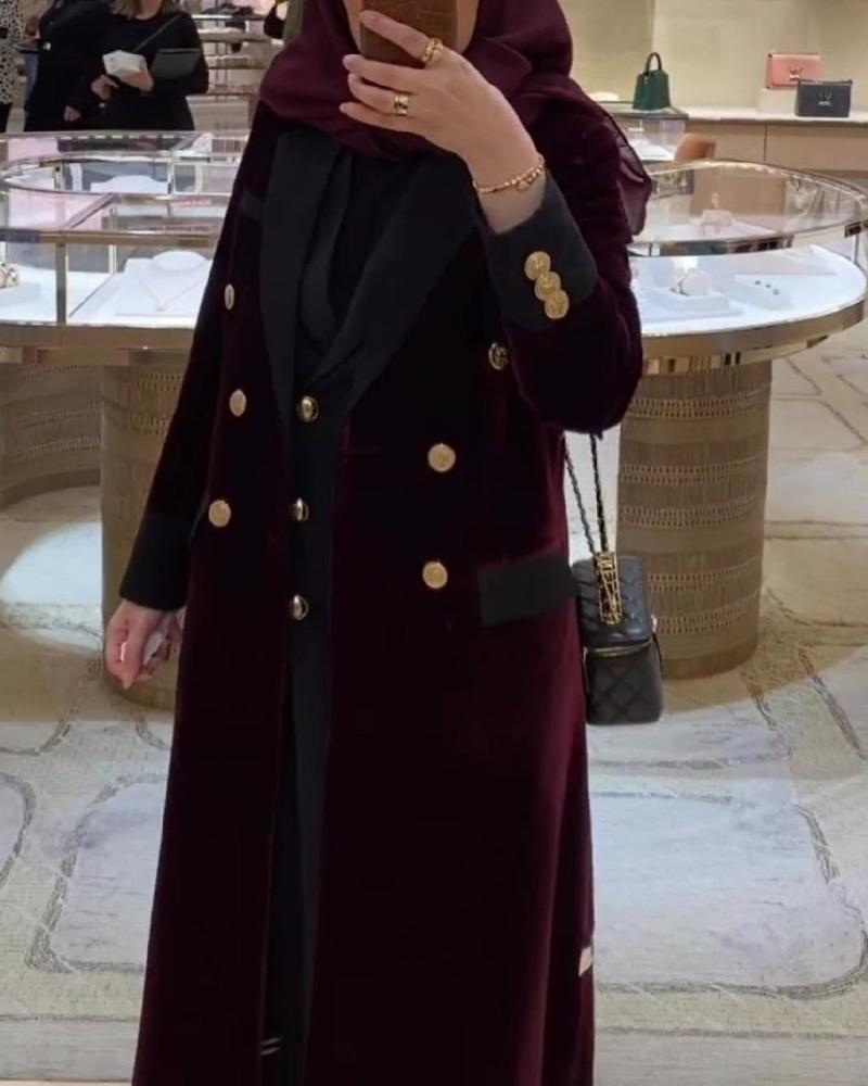عبايه مخمل ياباني باكسسوارات ذهبية