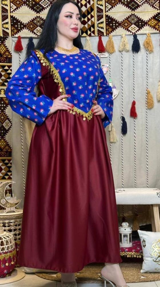 جلابية يوم التأسيس نسائية بأكمام منفوخة - أزرق / نبيتي