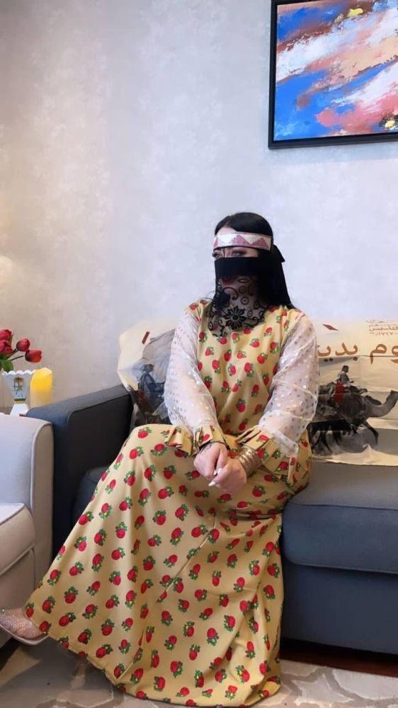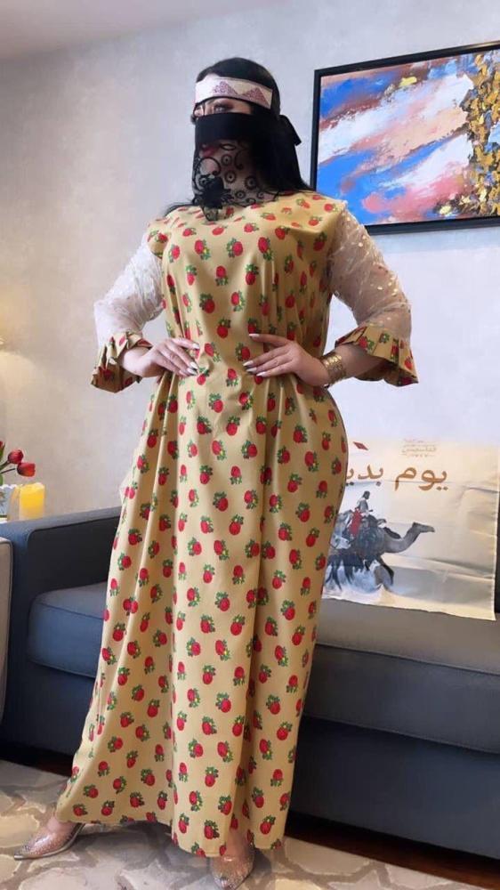 جلابية يوم التأسيس نسائية بأكمام شيفون شفافة - اصفر
