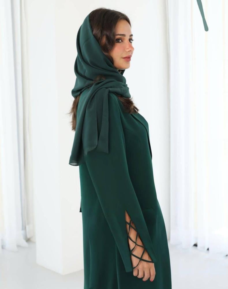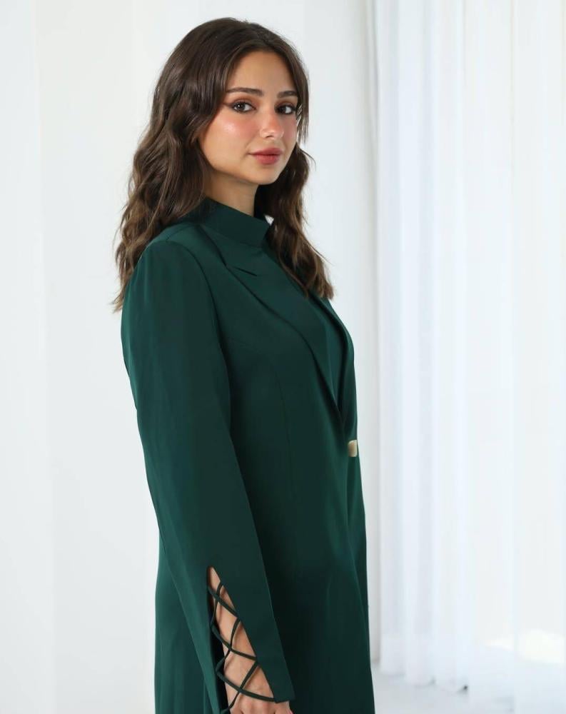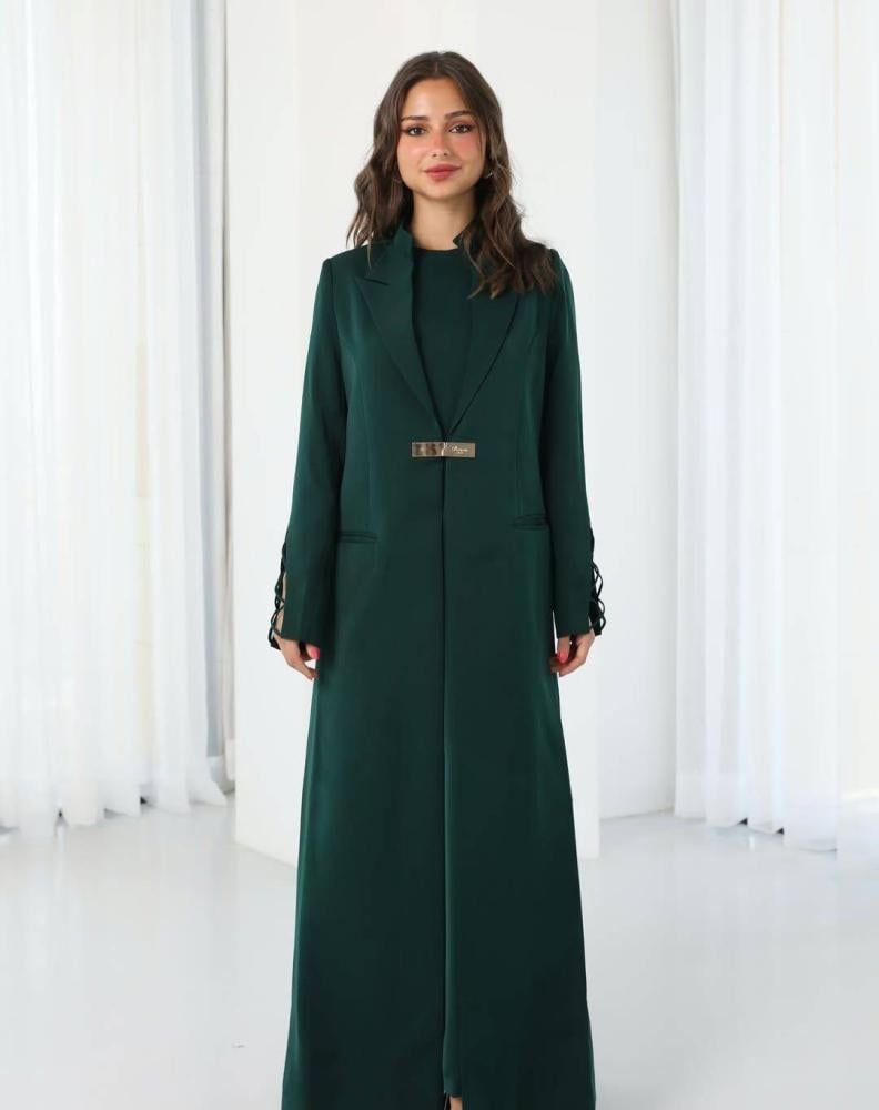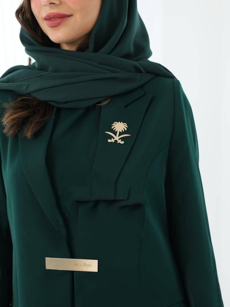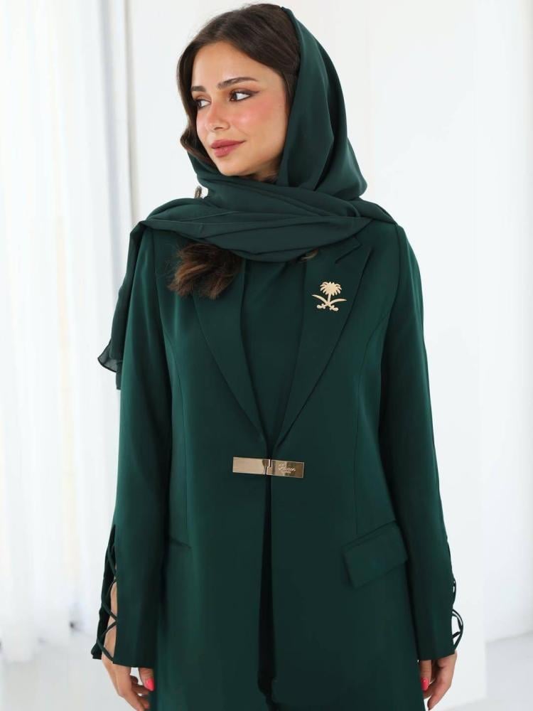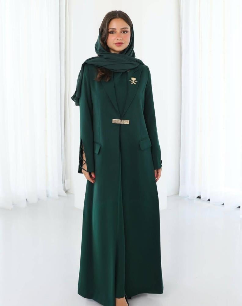احتفلي باليوم الوطني السعودي بأناقة لا تضاهى مع عبايتنا البليزر باللون الأخضر العشبي المميز، المستوحى من روح الوطن وعزته.