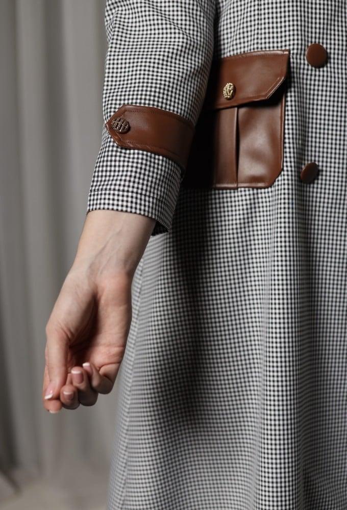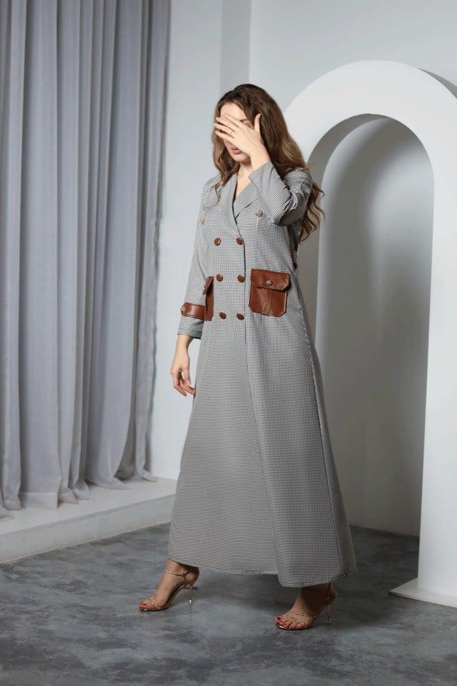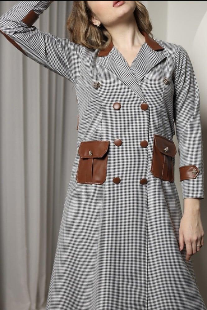 بخامة كاروهات و مُزينة بخامة الجلد و أزرار الجلد و الأزرار الايطالية الذهبية