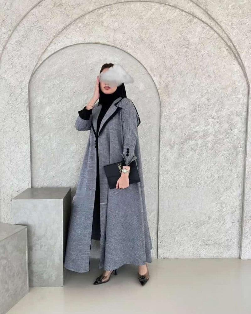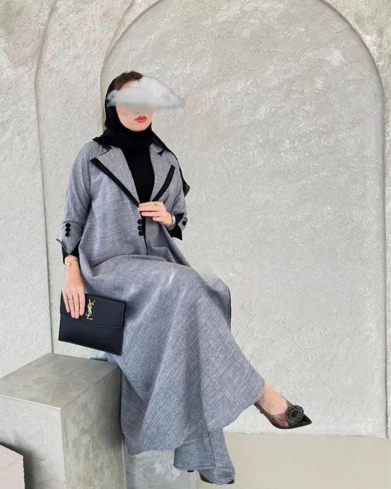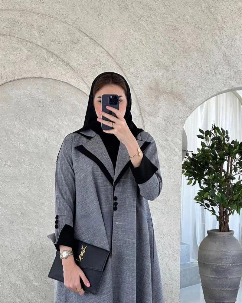 المجموعة العملية✨😍❤️ اللون رمادي مع اسود ( ممكن تطلبوها بالأسود كامل) الشيلة سادة التفصيل أزرار