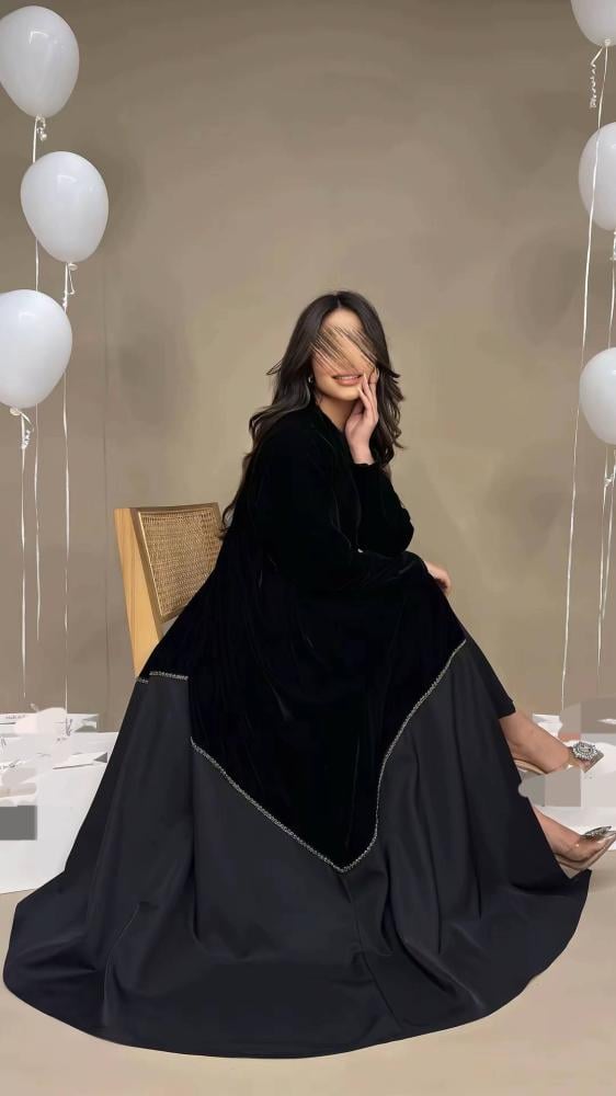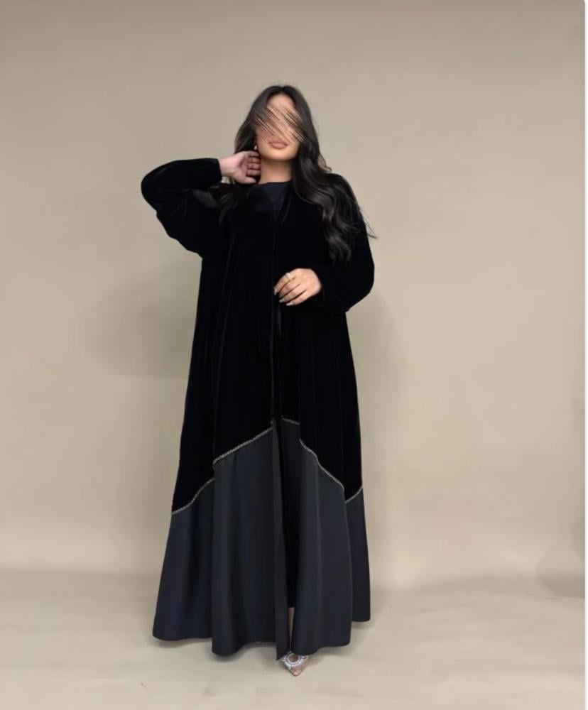 عبايه مخمل كوري بتطريز يدوي +كتان تاوياني.