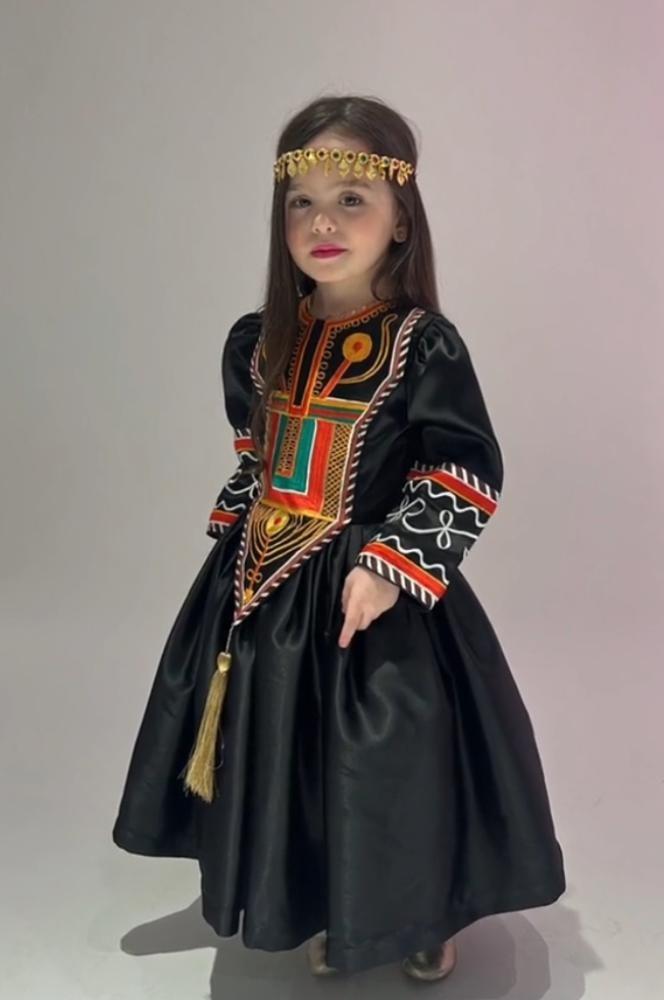 فستان يوم التأسيس هو حلة تجمع بين عبق التاريخ السعودي وسحر الطفولة، مصمم بعناية للفتيات الصغيرات ليلبسنه في يوم الاحتفال الوطني. يتألق الفستان بتفاصيل رمزية وألوان تعبر عن الرقي والعراقة.