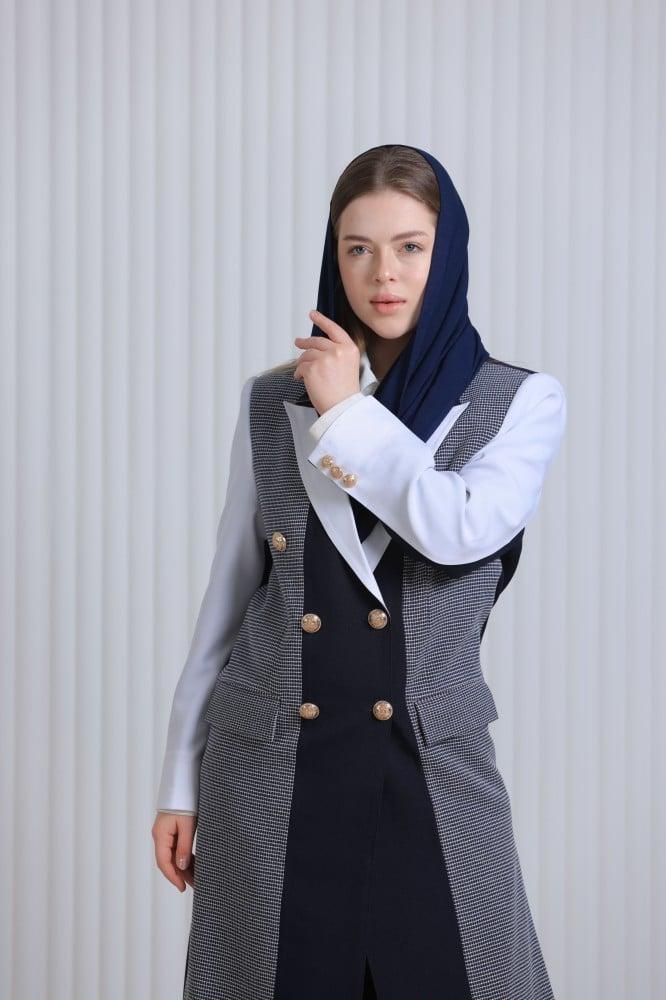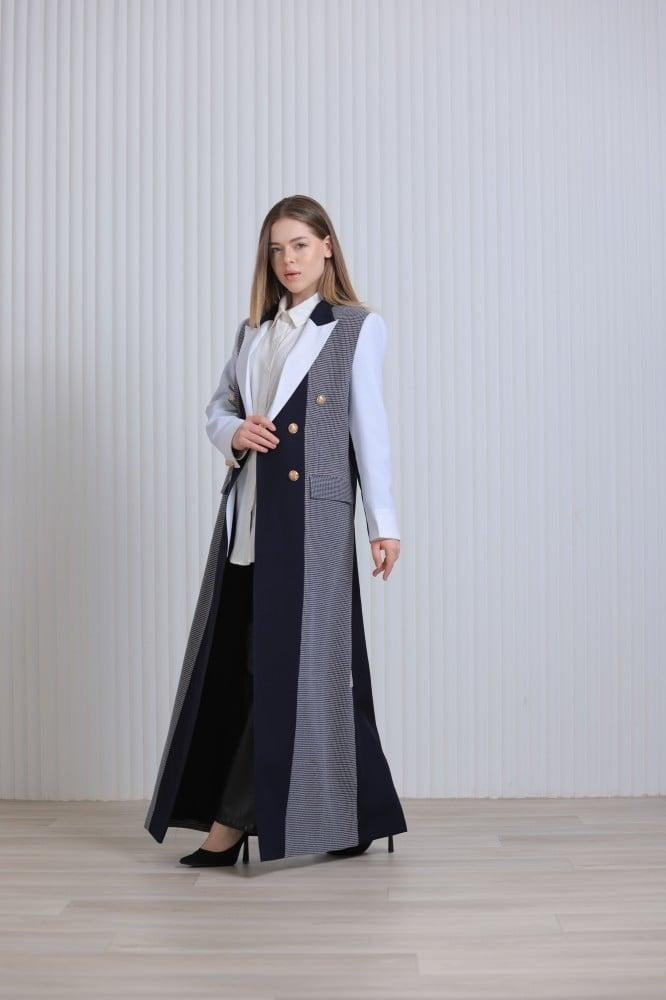 عباية بليزر باللون الازرق المخطط والاف وايت