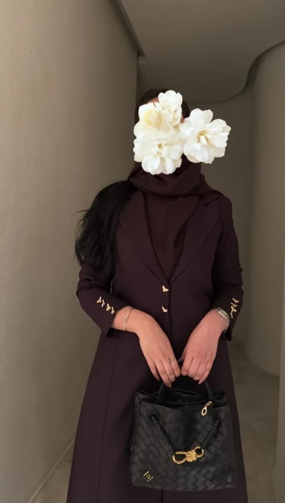 تفاصيل العباية: بليزر عبايه جيوب من الامام ، الاكمام مزينه بفراشات ذهبي ومن الامام ايضاً ، من الخلف فتحه صغيره .