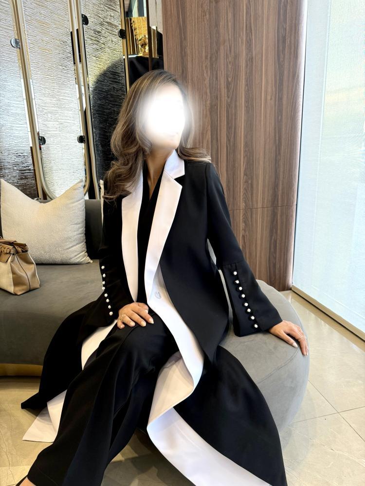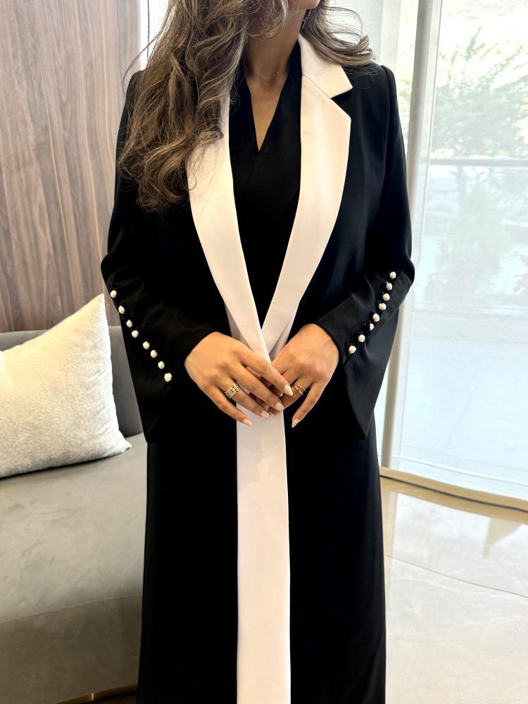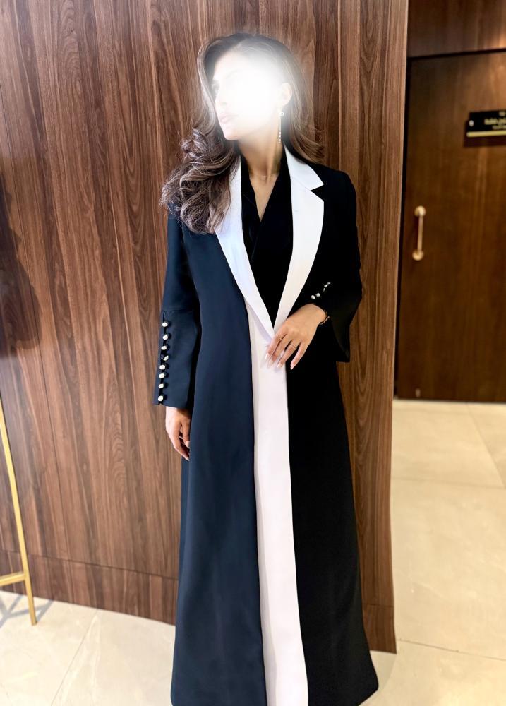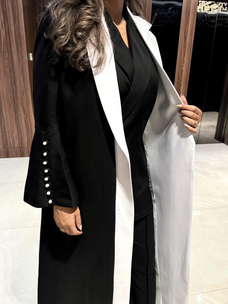 من قماش الكتان باللون الأسود و الأبيض بقصة رسمية مميزة من طبقتين من الامام
